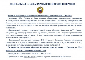 В целях проведения работы по профессиональной ориентации школьников восьмых - одиннадцатых классов, повышению заинтересованности выпускников школ в выборе карьеры военнослужащего и военной службы по контракту в Федеральной службе охраны Российской ...
