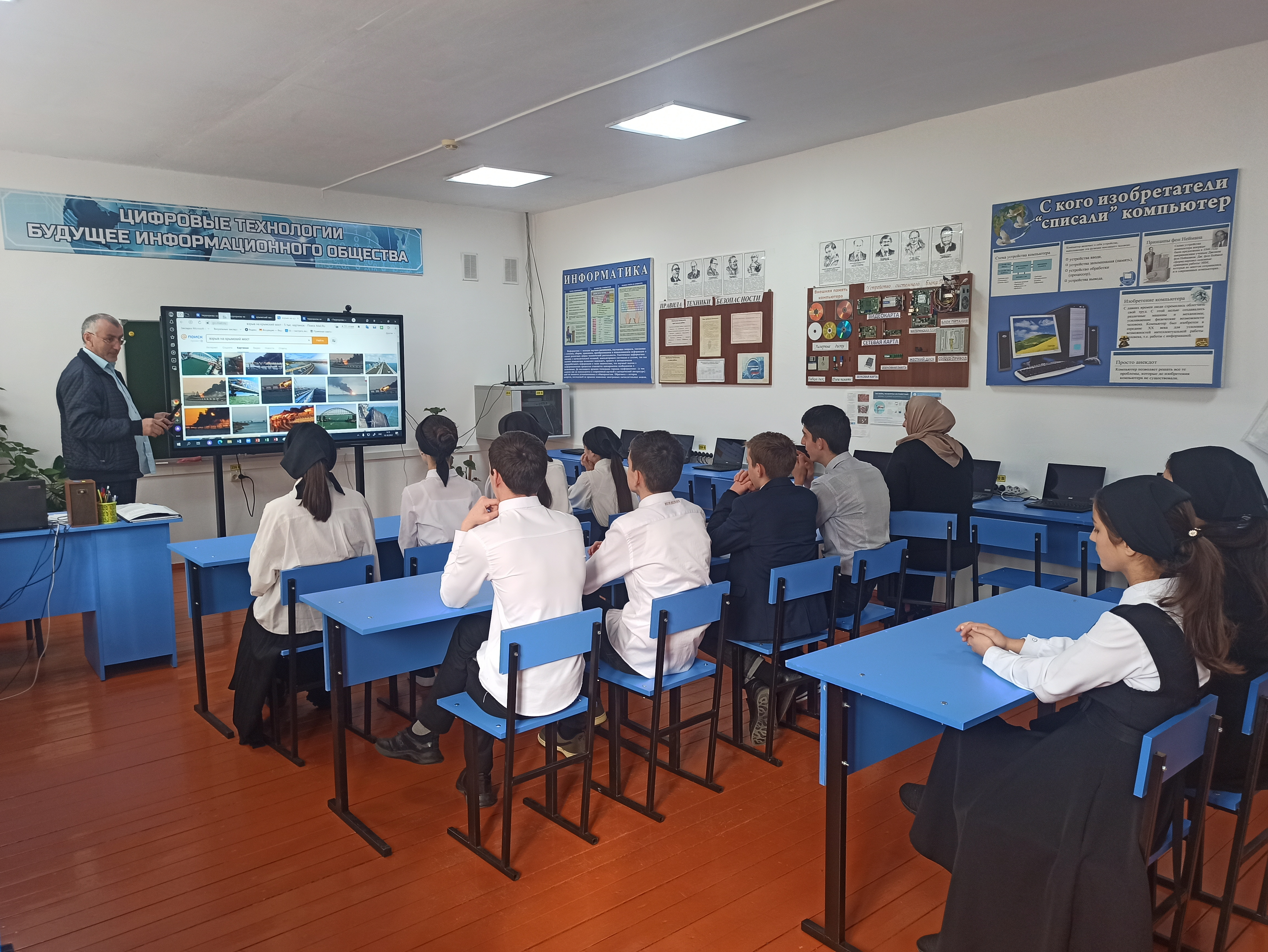 А также заместителем директора по ИКТ школы Буштуровым М-Э.Ш. проведена беседа с учащимися о безопасном использовании интернета. В зоверщении беседы были розданы буклеты с рекомендациями при работе в Интернете.