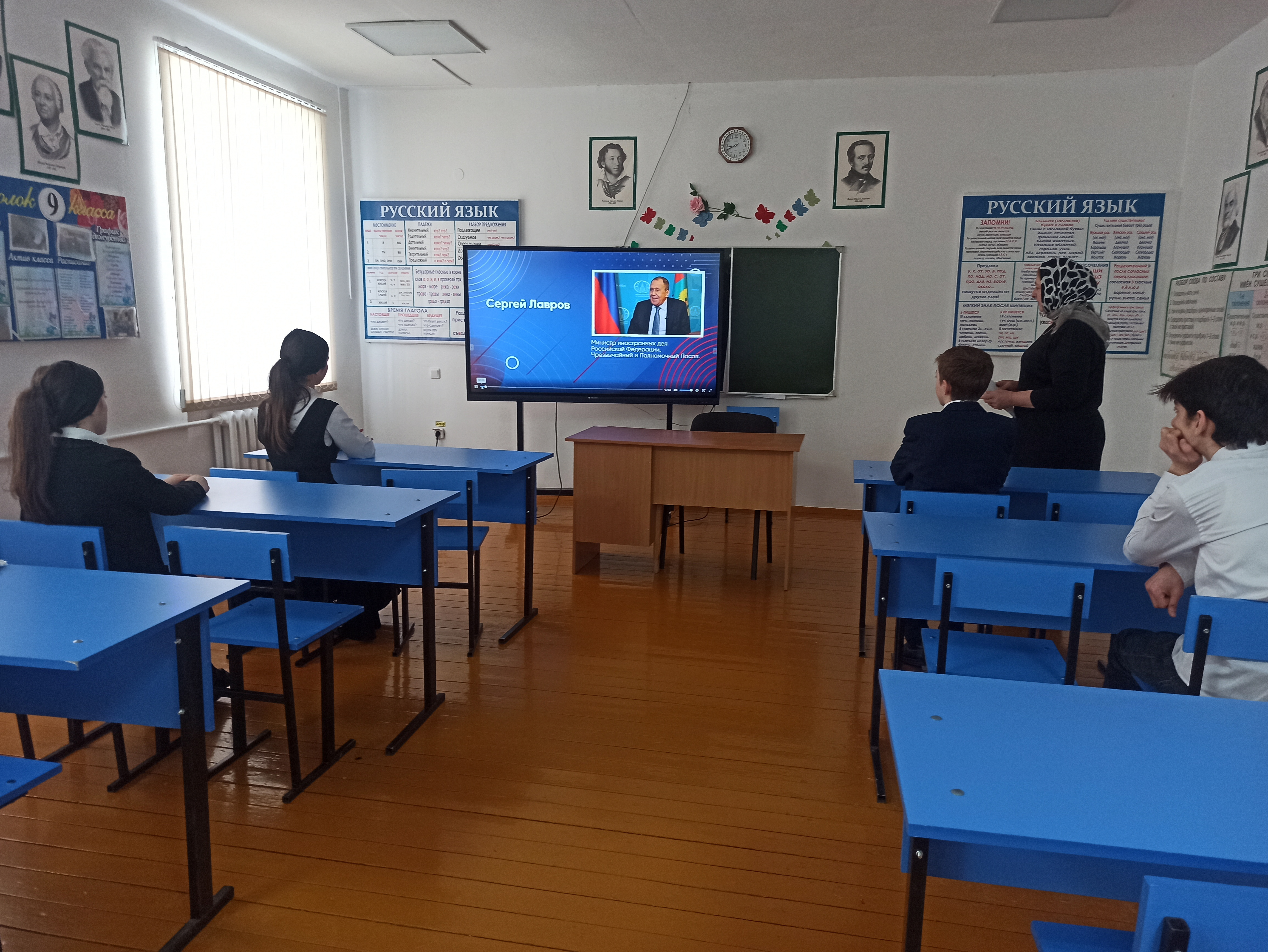В ходе мероприятия заместитель директора по ВР Буштурова Х.М. посещала мероприятия уделяя особое внимание использованию предоставленного материала с сайта https://razgovor-cdn.edsoo.ru . В большинстве классах рабочие места учителя (классного руководителя) оборудованы интерактивной доской и компьютером, подключенной к сети Интернет, что значительно увеличивает возможности ведущего внеклассного урока Разговор о важном. Так, в начальных классах, на интерактивной доске в конце урока дети сами работали с интерактивными элементами представленными на сайте. Достопримечательности природы России озеро Байкал, Вулканы камчатки, Ленские столбы, кремлевские башни и собор и многое другое. Дети меняясь демонстрировали друг другу уникальные места своей Родины.