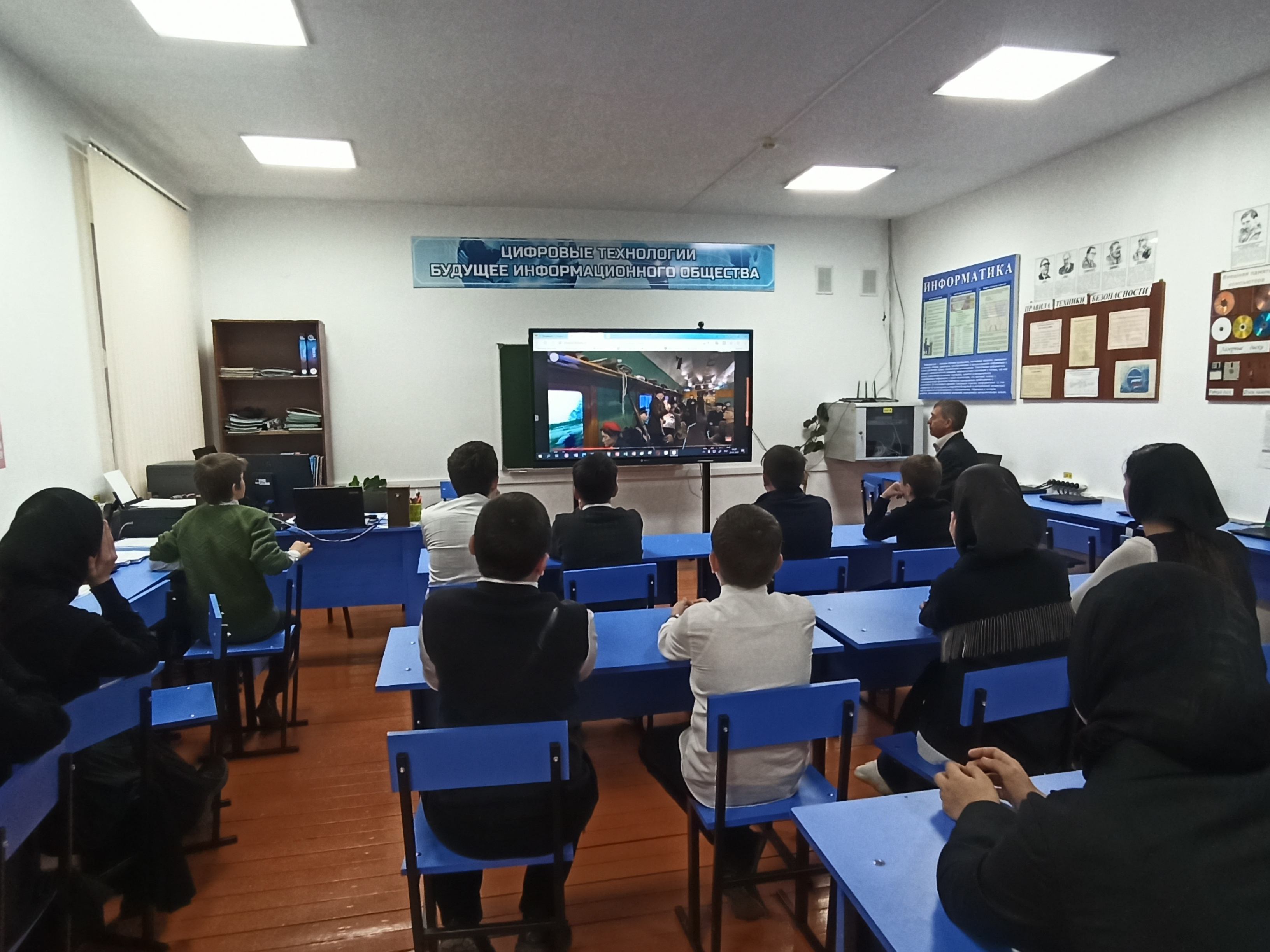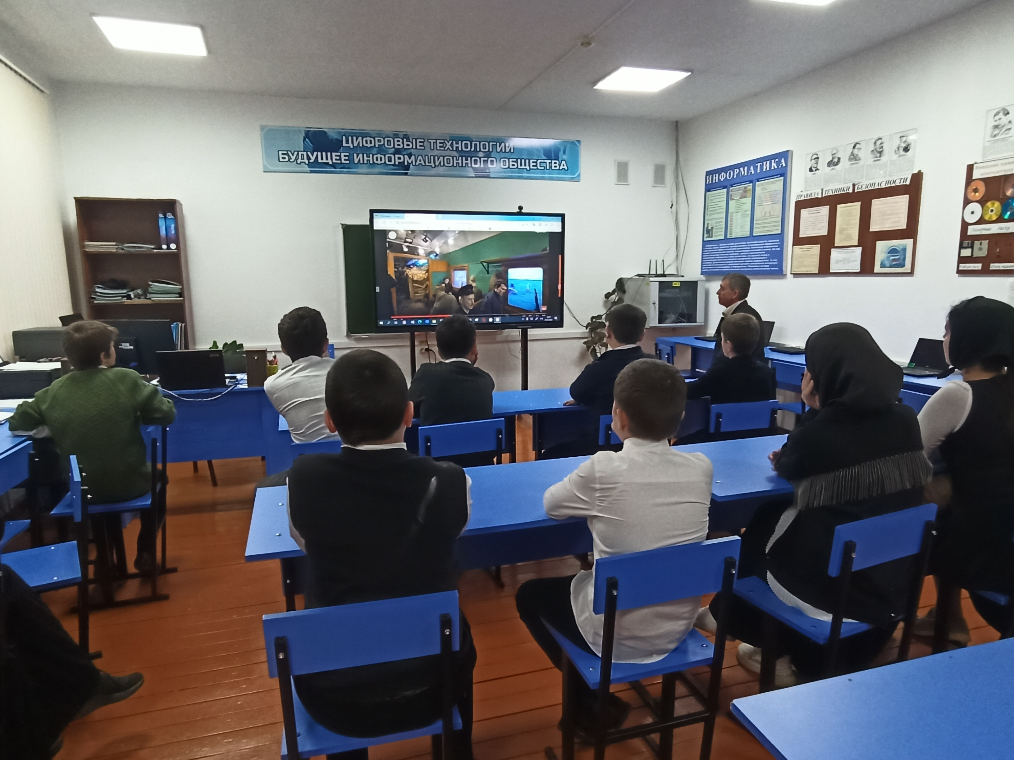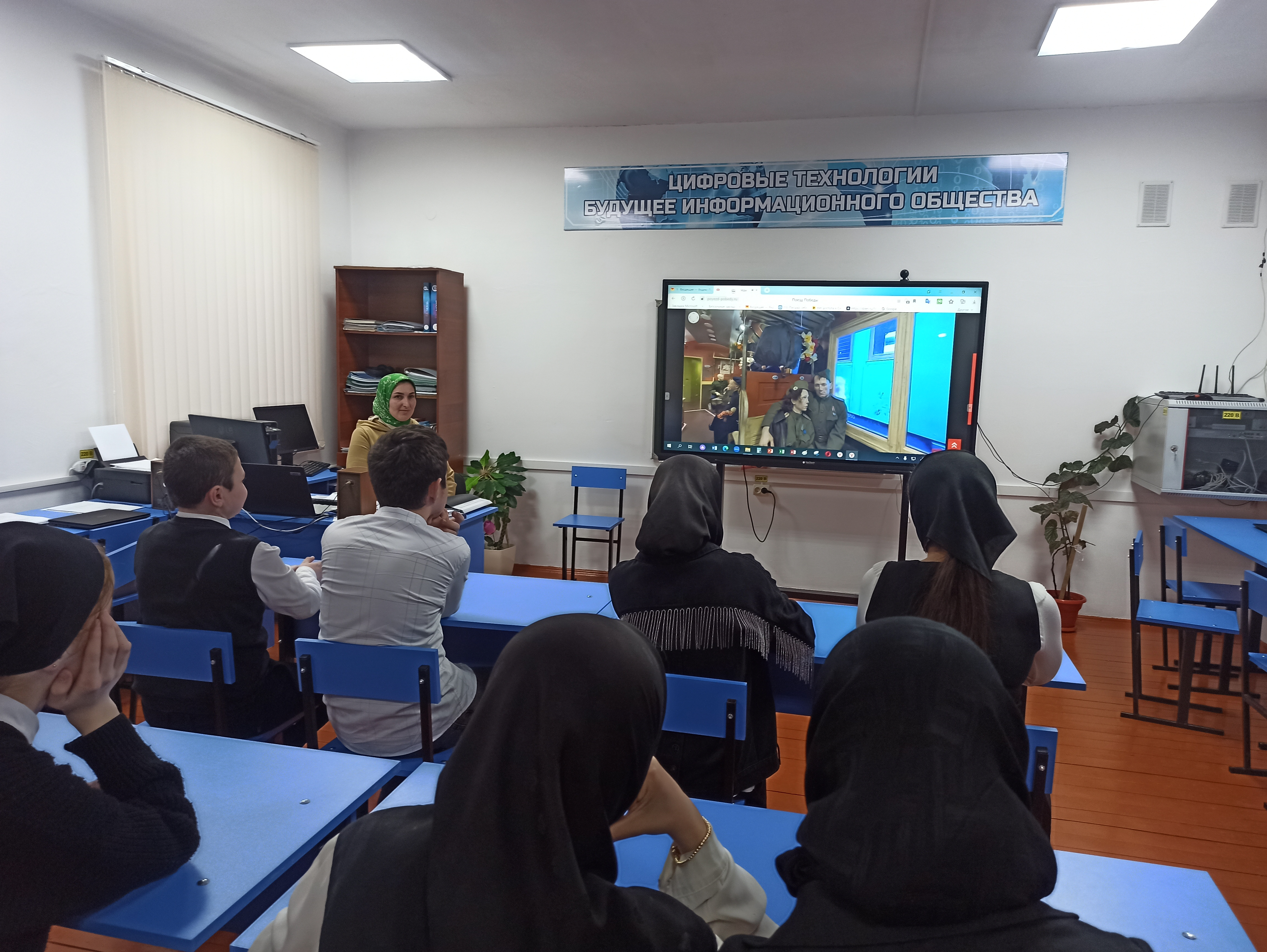 В МБОУ "Эшилхатойская СОШ" 21 марта прошли единые уроки среди учащихся старше 12 лет, с демонстрацией виртуального 3D тура по экспозиции с сайта https://povezd-pobedv.ru/3d-tur/