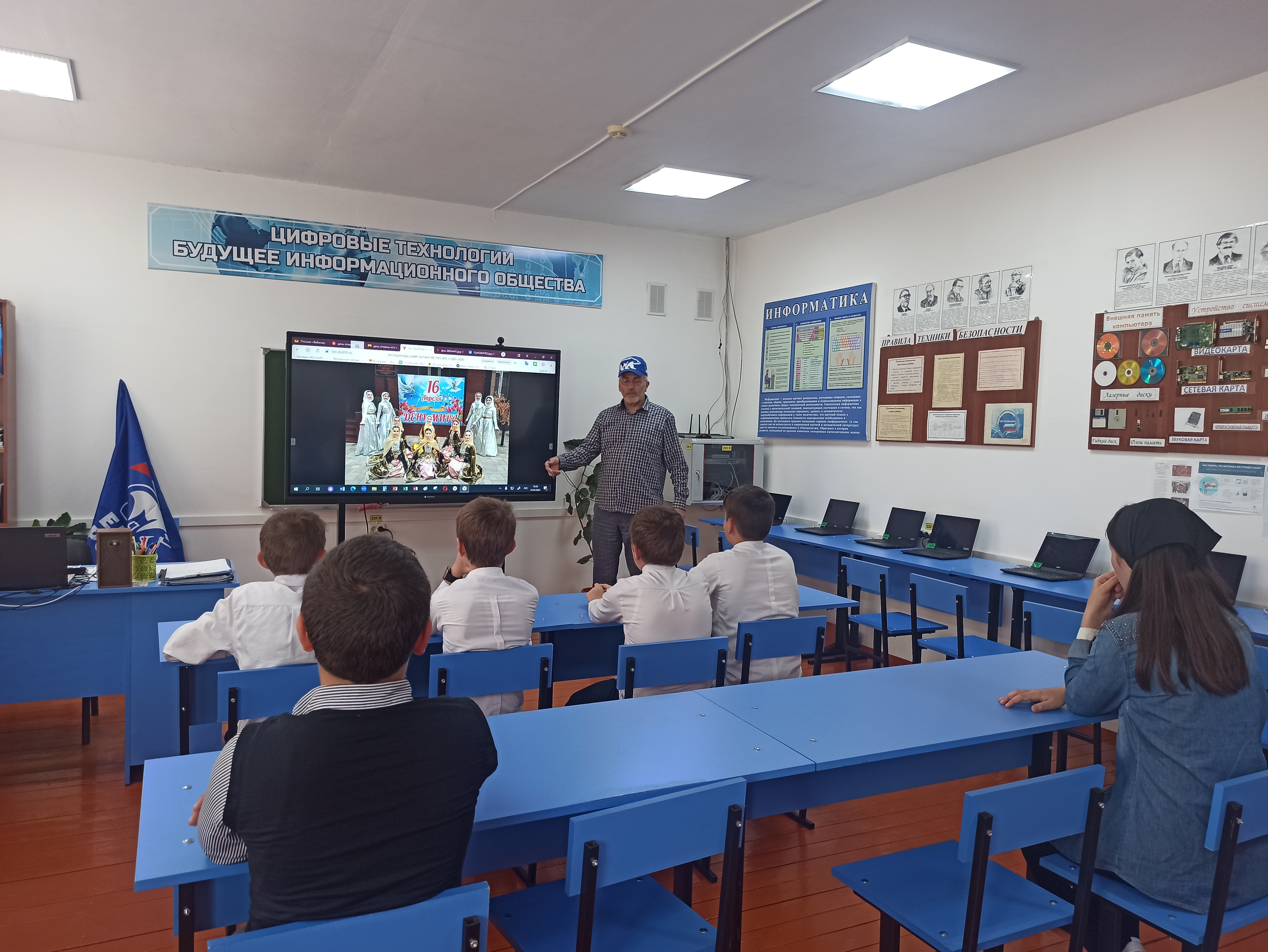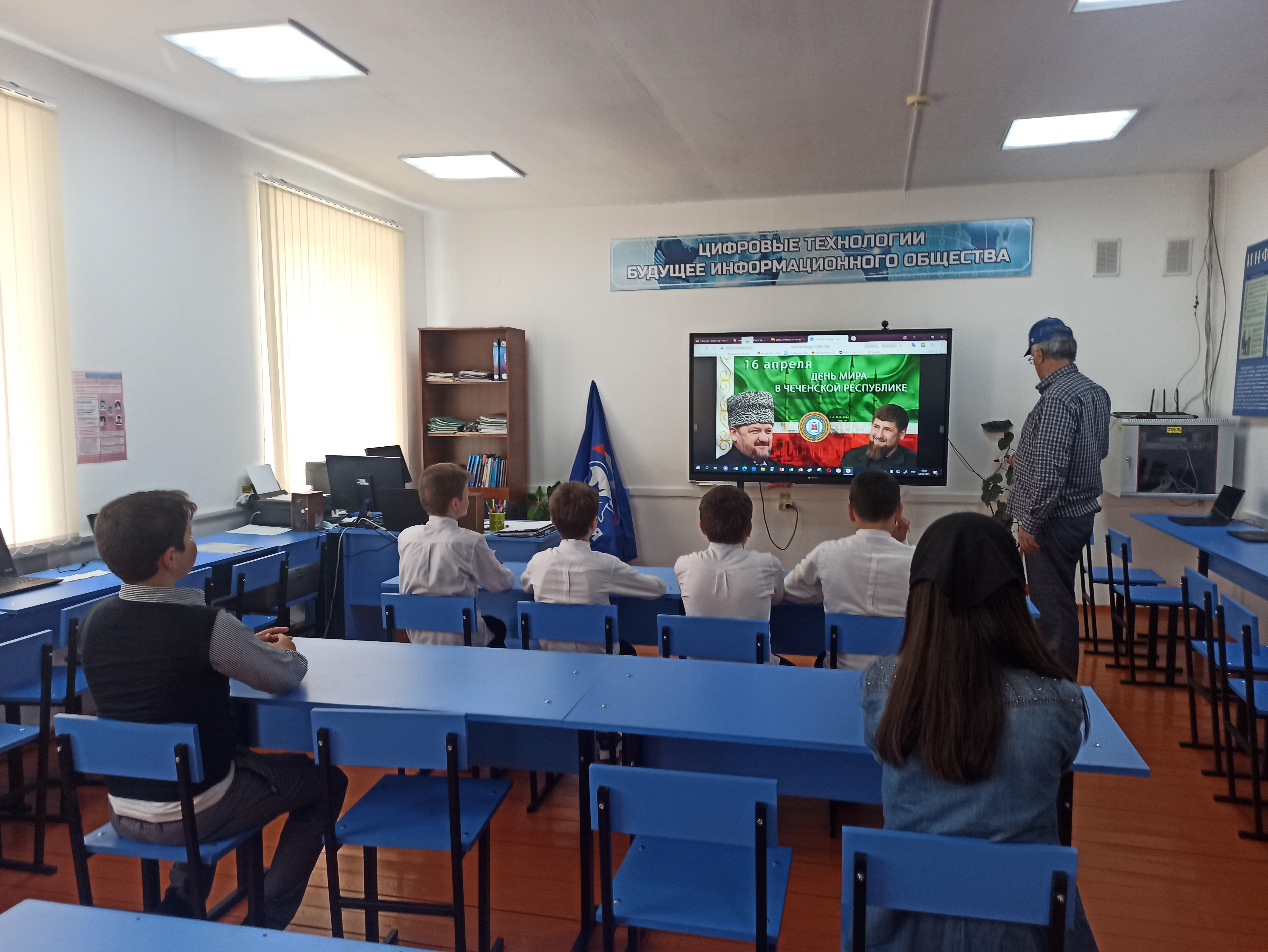 14.04.2023«День отмены КТО» 14 апреля 2023 года классный руководитель 6 класса Чатаев У.А. провёл классный час «День отмены КТО» с целью вспомнить страницы истории, подчеркнуть роль главы Республики в восстановлении разрушенных городов и сел, воспитывать патриотизм. Проведена беседа об отмене КТО: о подвиге первого президента Чеченской республики Ахмата-Хаджи Кадырове. Поговорили о режиме КТО в Чеченской Республике. Показали картинки разрушенного города Грозного и современного города.