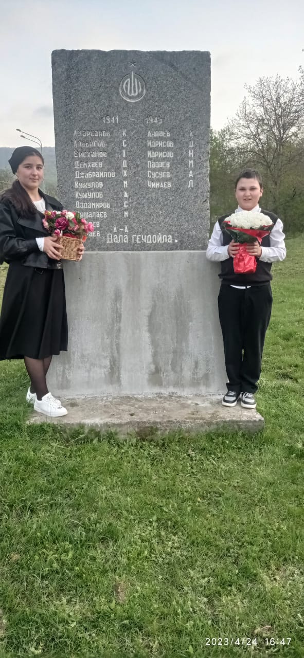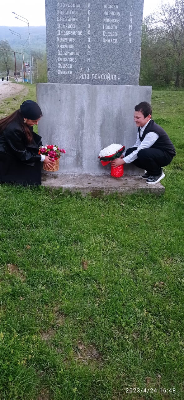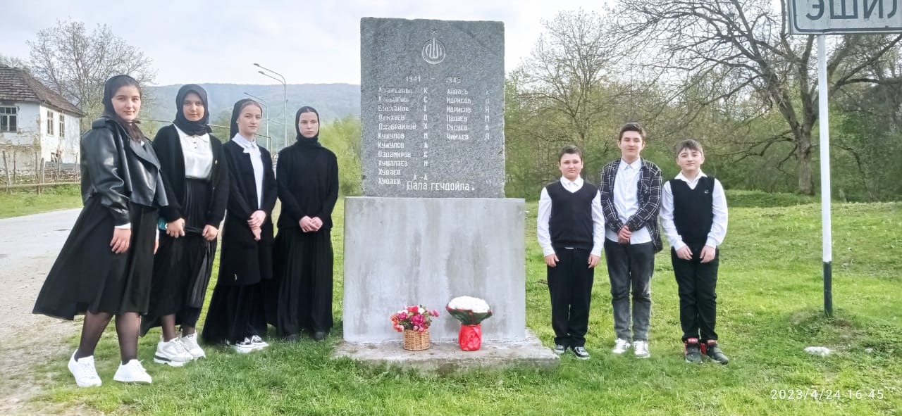 24.04.2023Учащиеся 7 класса приняли участие в акции "Благоустройство мемориалов" , который проходил 11.04.2023г. При мемориальной плите, установленную в честь участников ВОВ, у въезда в село Эшилхатой, проведена уборка прилегающей территории, проведен мелкий ремон и покраска основания плиты. Организаторами уборки и ремонта были учащиеся 7 класса и волонтеры односельчане. Сегодня в рамках акции "Возложение цветов" учащиеся 7 класса, среди которых и дети участников СВО, возложили букеты цветов к подножию мемориальной плиты.