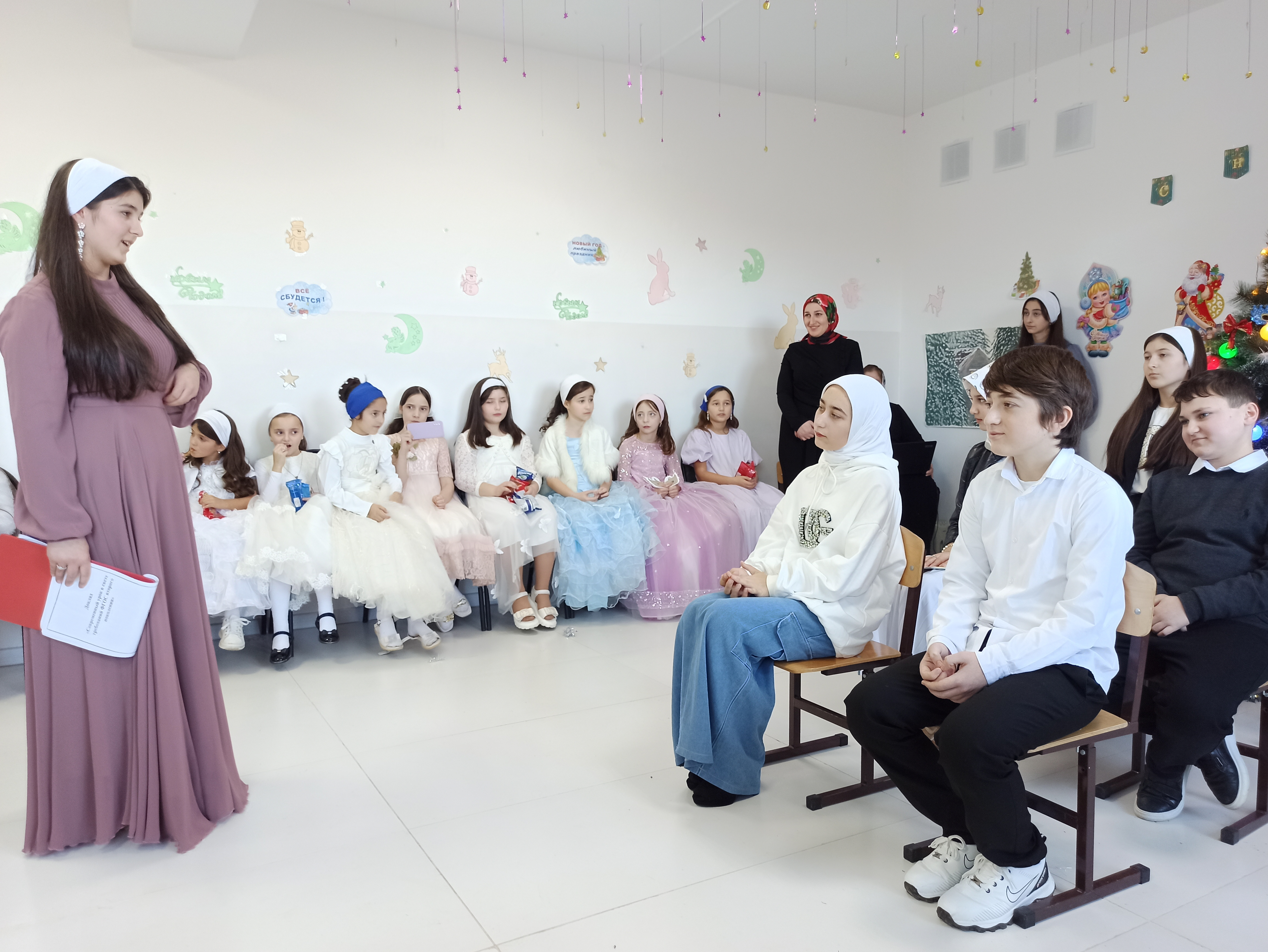 27.12.202327.12.2023г по приказу МУ "Веденский РОО" в нашей школе как и вдругих школах нашего района проходили новогодние мероприятия. Детям с 1-4 классы подарили новогодние подарки, друг другу поздравляли и взрослые и дети, рассказывали стихи, пели песни, ставили смешные сценки. Дети были наряжены в карнавальные костюмы. Желаем всем гостям нашего сайта всего наилучшего. С Новым годом!
