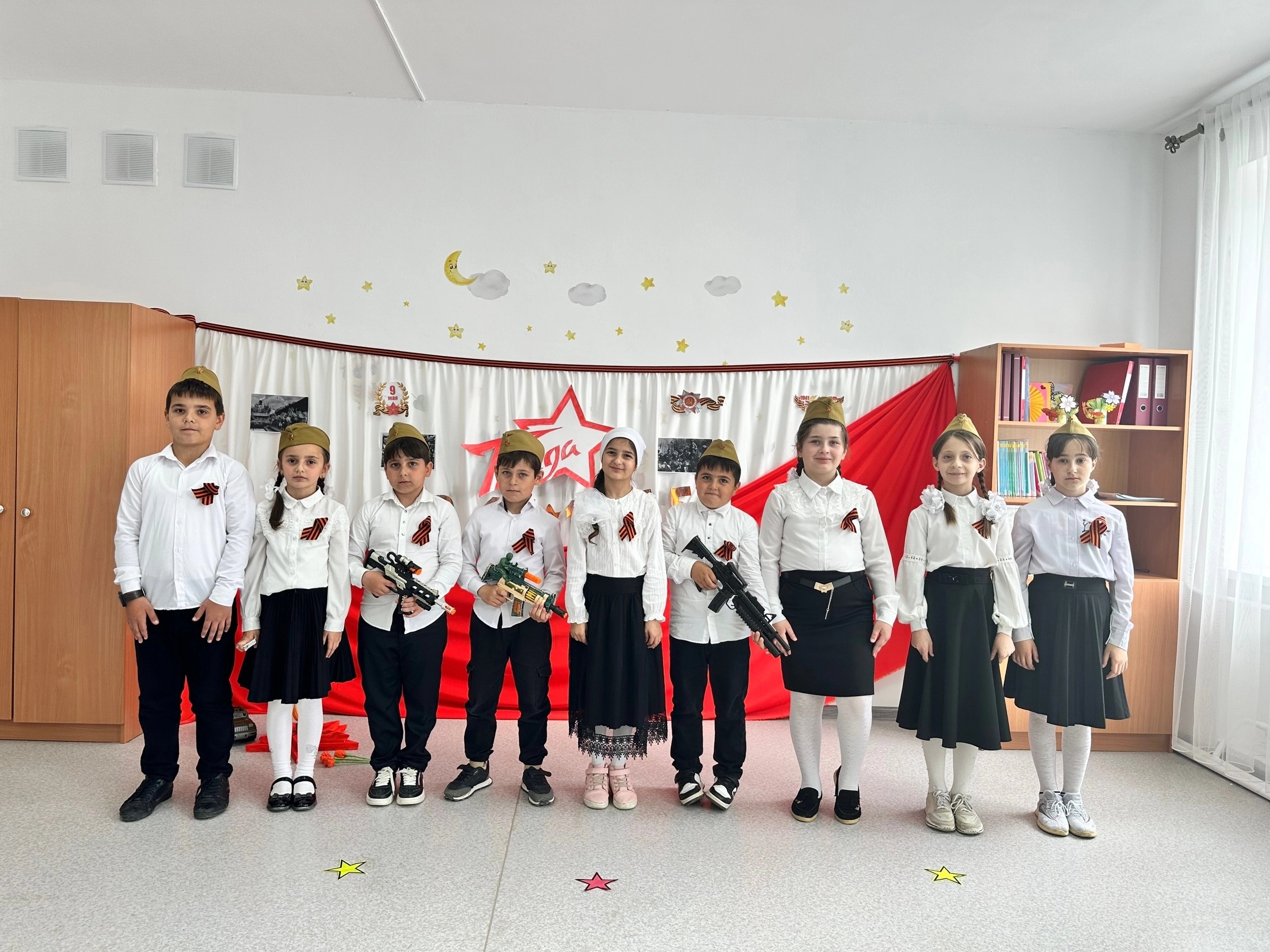 Советник директора по воспитанию Абдуллаева Х. совместно с учителем начальных классов Матаевой Х. провела мероприятие посвященное Дню Победы.