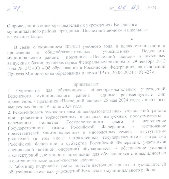 Ознакомтесь с приказом Веденского отдела образования -здесь