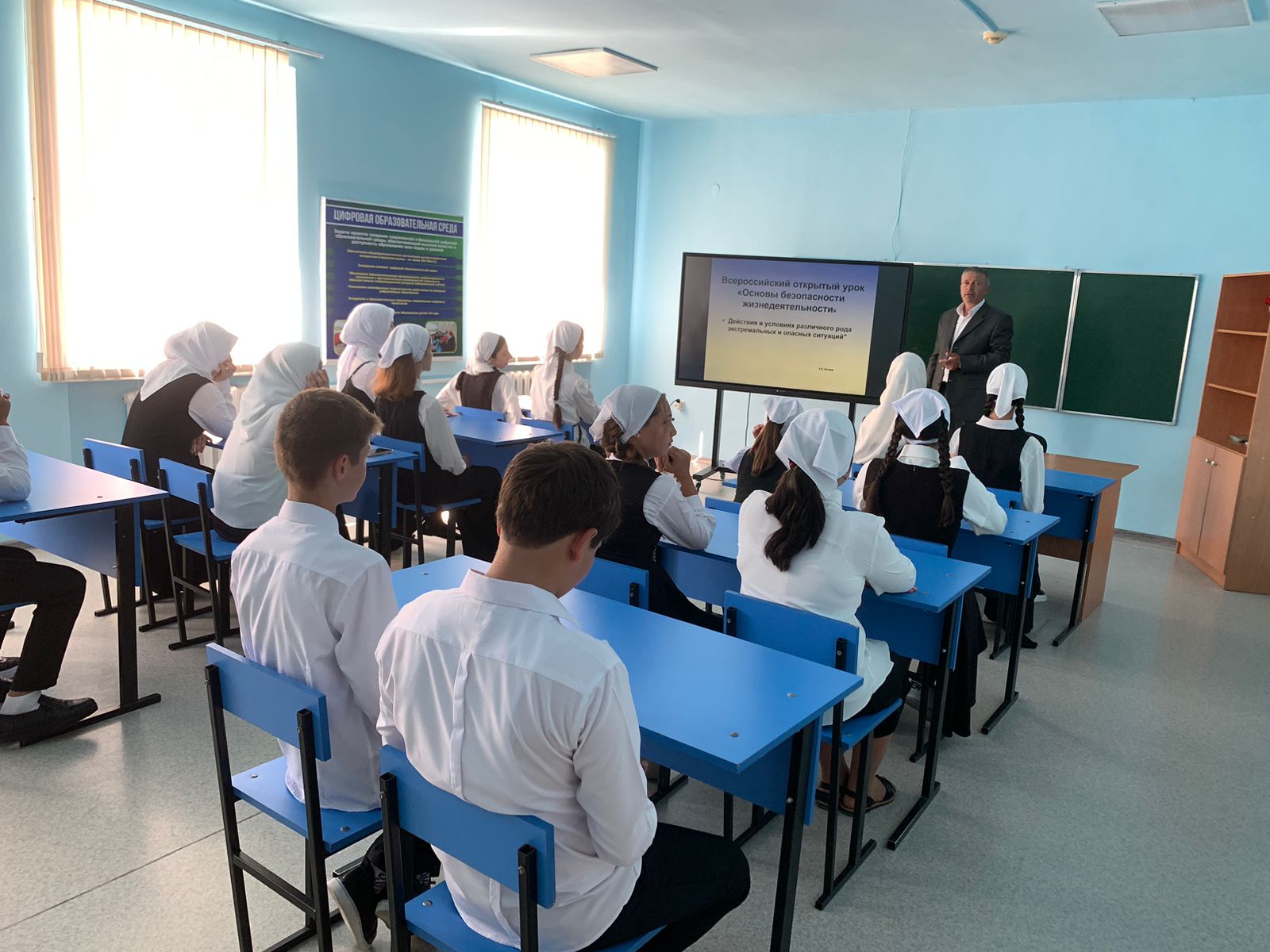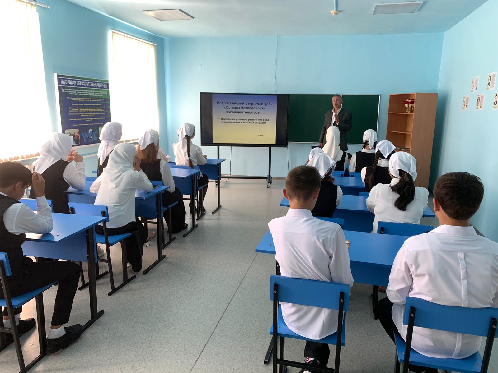 03.09.2024В МБОУ «Эшилхатойская СОШ» проведен Всероссийский открытый урок по ОБЗР.Тема: Действия в условиях различного рода чрезвычайных ситуаций, в том числе в местах массового пребывания людей, адаптации после летних каникул.Цель урока: уяснение и закрепление навыков действий в различных чрезвычайных ситуациях.Рассмотрели наиболее распространенные чрезвычайные ситуации и обсудили алгоритмы действия при их возникновении.