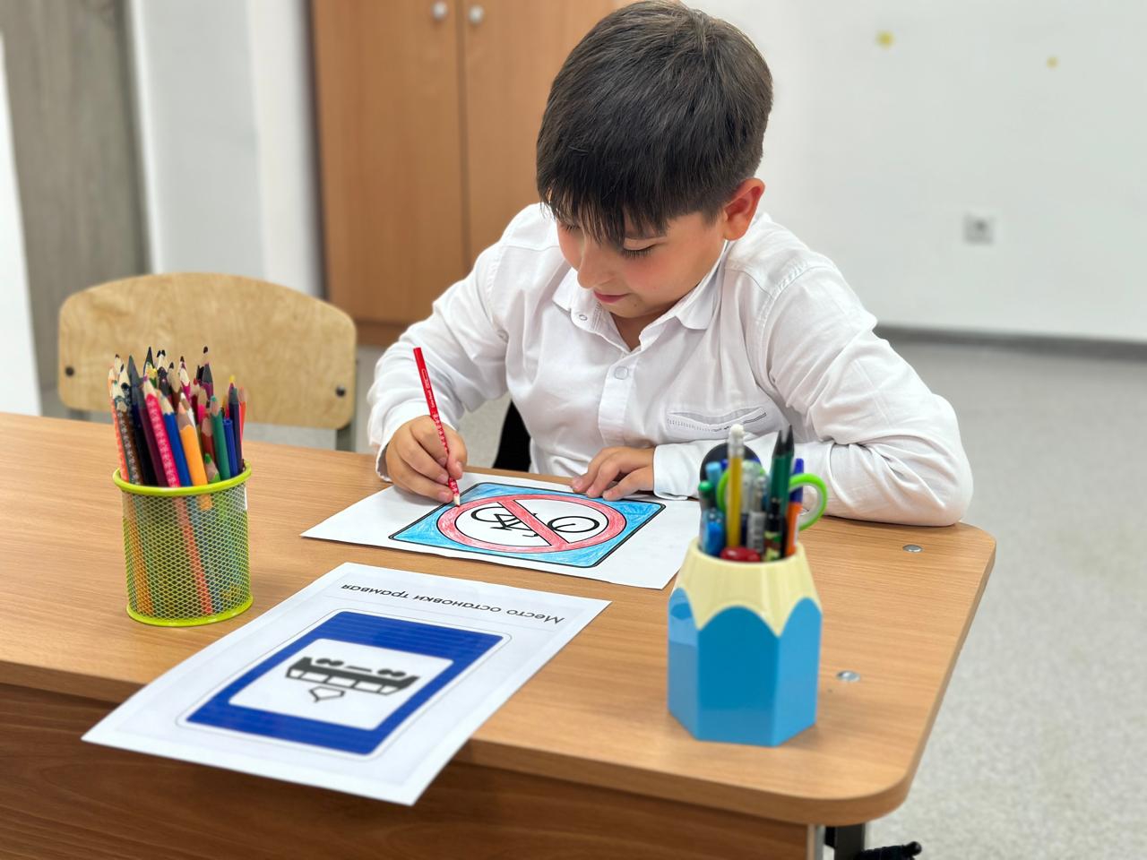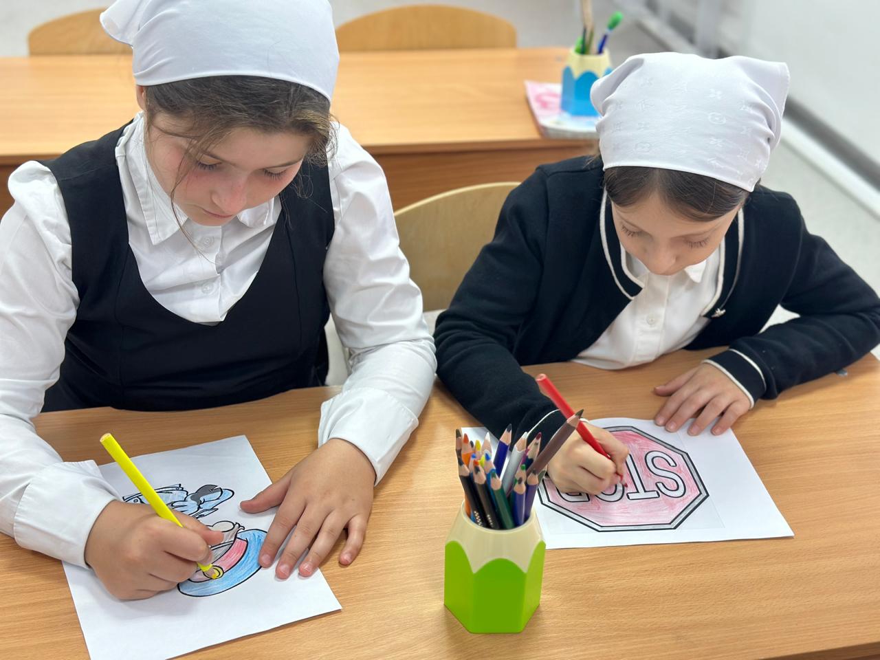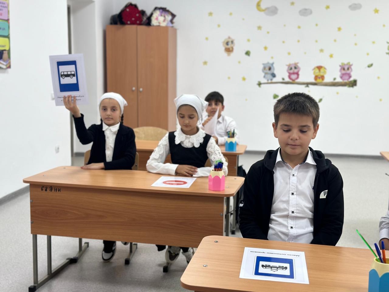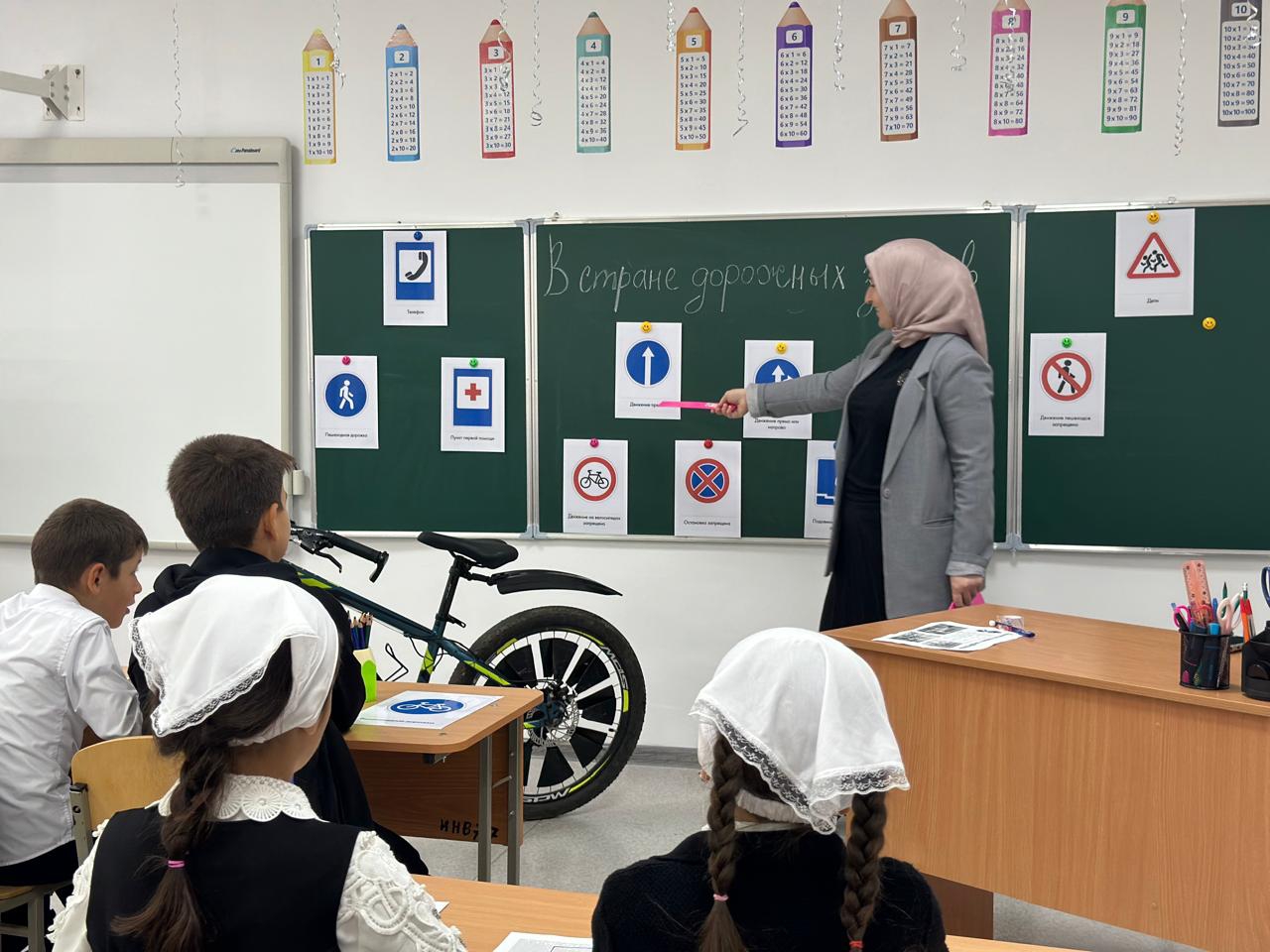 Дети показывали свои знания в соблюдении правил движения вдоль проезжей части пешком и на велосипеде.Рисовали дорожные знаки. Показали способность различать предупреждающие знаки. Учителя раздали буклеты с правилами безопасного поведения.