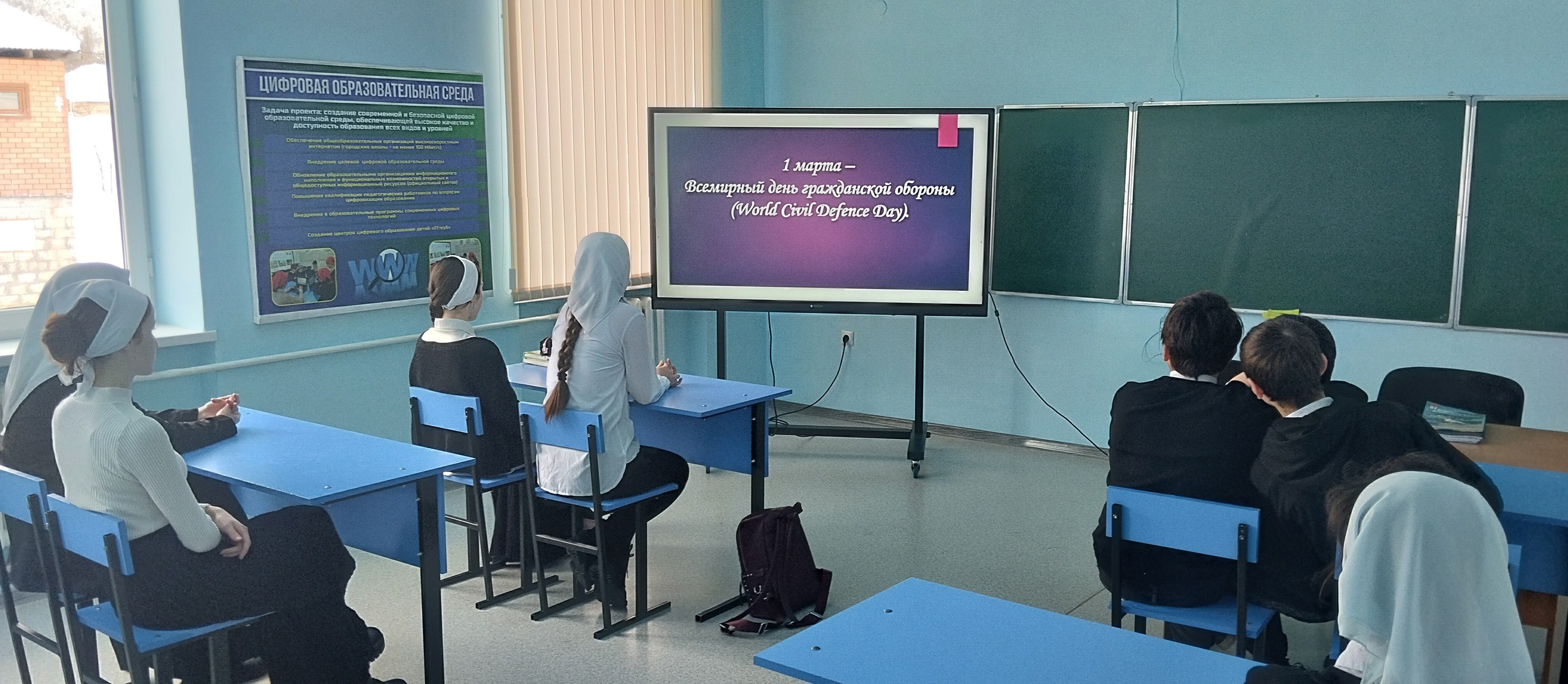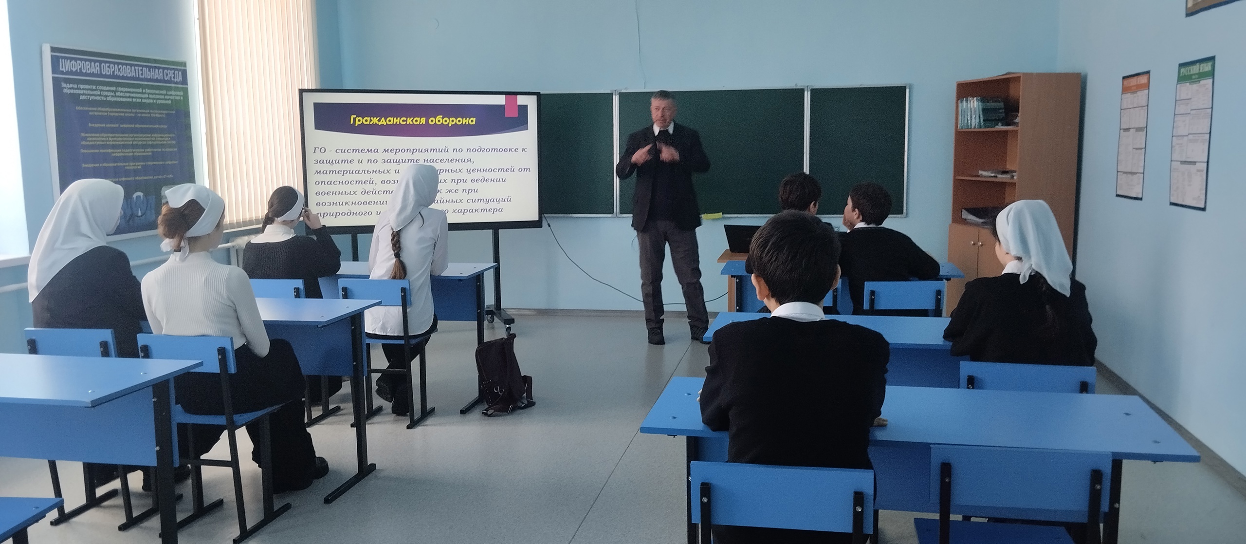 01.03.2025В МБОУ «Эшилхатойская СОШ» прошел открый урок по Основам безопасности и защита Родины, приуроченный к празднованию Всемирного дня гражданской обороны, который отмечается 1 марта. Урок нацелен познакомить обучающихся с гражданской обороной, историей её создания в нашей стране, этапами ее становления и задачи, которые решает гражданская оборона