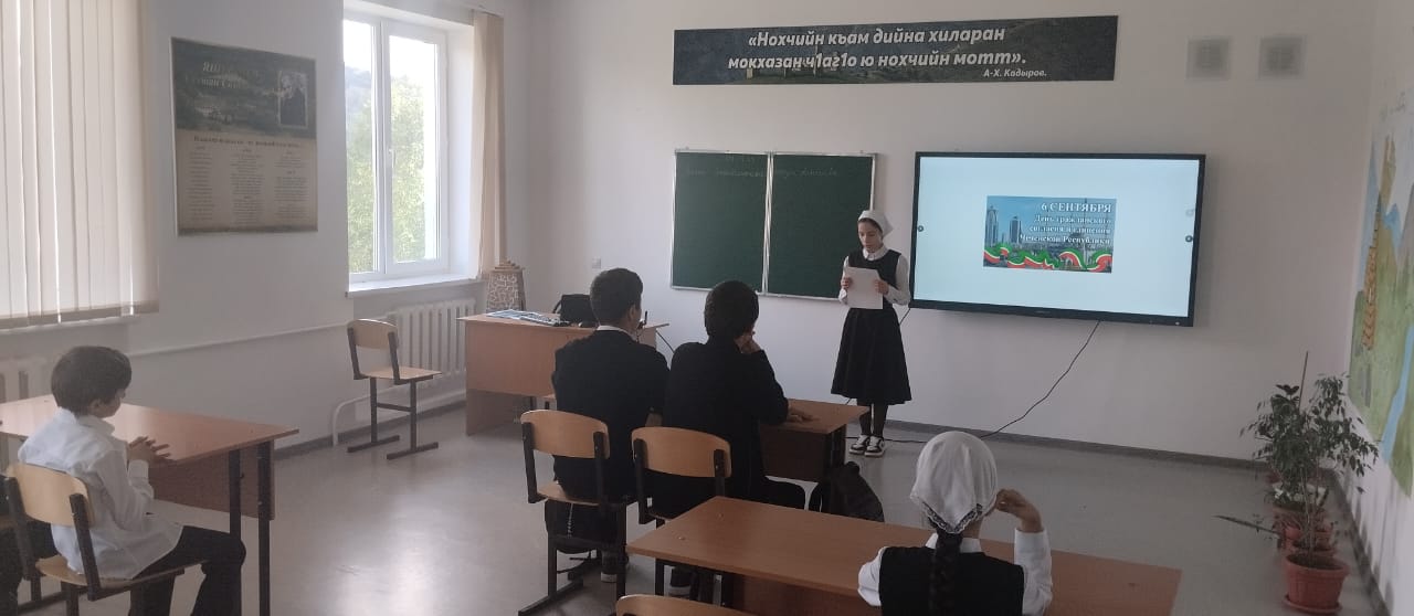 08.09.2025Сегодня в школе проведены с учащимися разговоры о важном, приуроченный к Дню Чеченской Республики и гражданского согласия и единения. Разговоры прошли в 7–11 в форме «Разговоры о важном» (беседа, видеофрагменты, работа в группах, творческие задания).