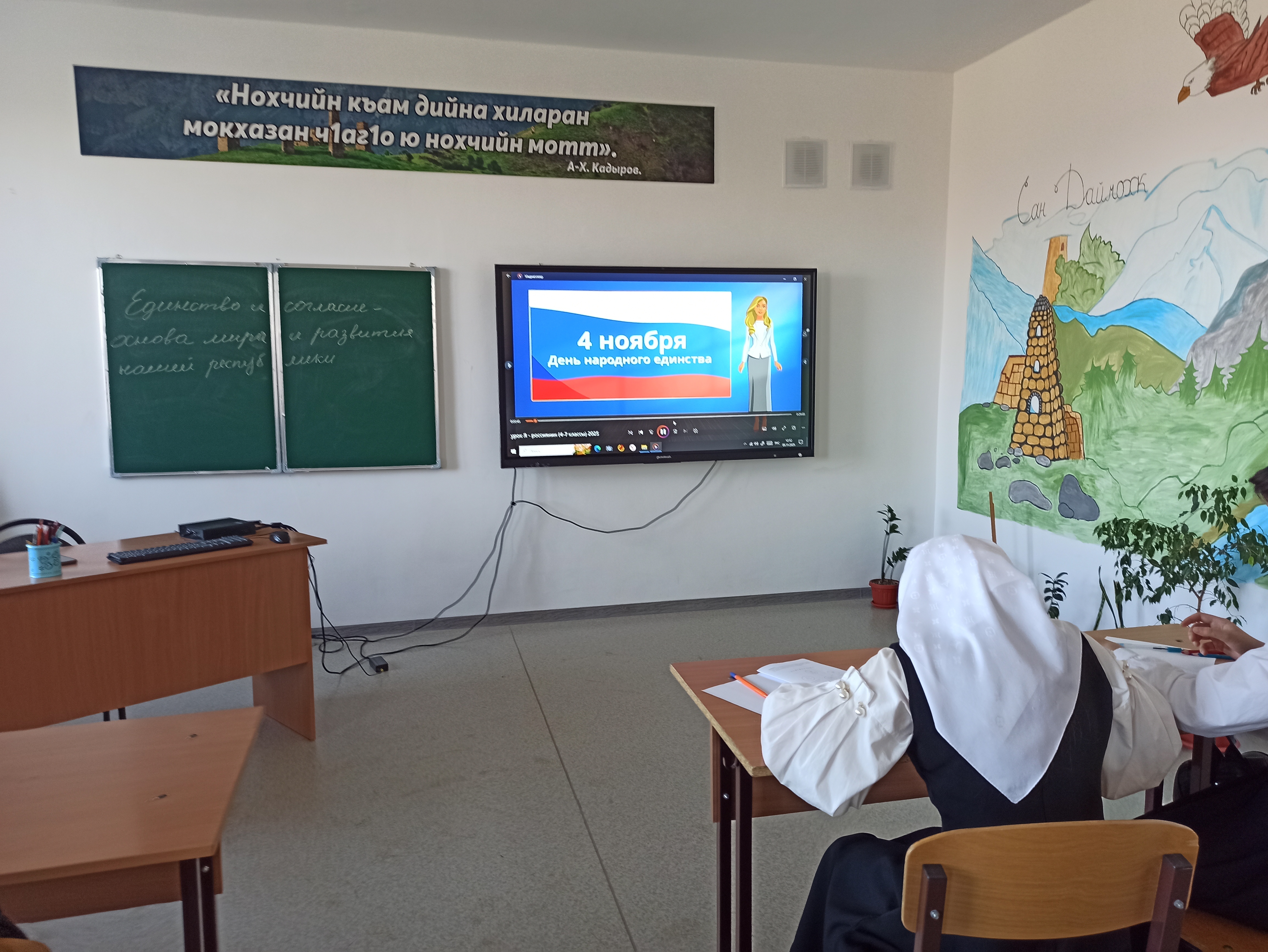 05.11.2025В связи с празднованием Дня народного единства Российской Федерации (4 ноября) и участия в Акции "Я-россиянин" классный руководитель 6 класса провела классный час с целью патриатического воспитания молодежи. В ходе подготовки к мероприятию классный руководитель зарегистрировалась на официальном сайте и подготовила видеоматериал и распечатала тетради для учащихся. А также акцент делался на то, что в Чеченской Республике на протяжении многих лет отсутствуют межнациональные и межконфессиональные разногласия, сохраняются мир и взаимопонимание.